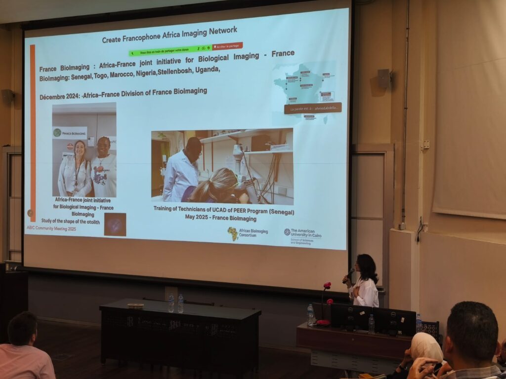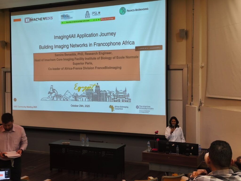 Last month, Samira Benadda, Head of the core imaging facility at IBENS (France-BioImaging Paris Centre node) was invited to the 4th Annual ABIC Meeting, held in Cairo and bringing together the African community specialized in biological imaging. Samira co-coordinates the Africa division of France-BioImaging with Jean-Luc Verdeil, Researcher at CIRAD. The event highlighted the Africa-France initiative, supported by France-BioImaging, which is committed to promoting and strengthening access to imaging technologies through expertise sharing, training, and the development of sustainable collaborations.