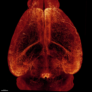 (1) Cleared mouse brain Ultramicroscope: Thibault Dhellemmes – Institut des Maladies Neurodégénératives & Jérémie Teillon – Bordeaux Imaging Center